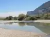 We stayed on the bank, but still saw a lot of birds. Beautiful location. Watched some people cross the river and take the steep trail into the canyon - need to be in good condition with good boots for that.