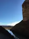 Watch the meandering river move slowly through the steep walled canyon. Kayakers maneuvering through the slow moving and some places shallow waters add to the majesty of the location.