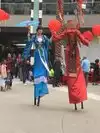Dressed up people on stilts and balloons for the kids, decorations ! So pretty and nice.