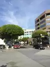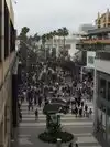 An open air shopping mall in Santa Monica. Seems recently constructed. Looks new and modern. Nice architecture as well.