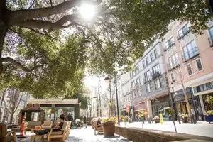 Great mixed-use shopping area with apartments/condos, restaurants, and a wonderful selection of shops. This is a fun area to just stroll about, maybe stop at one of the outdoor areas for a glass of wine or a plate of tapas. Free parking is available on the street or in the large underground parking areas.