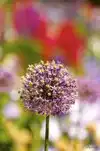 The display garden is like a fairy land with purple globes, colorful cones, pink trees, and spikey spherical trees. It's full of colors and shapes, lawn ornaments, and pastel benches. It's worth the visit during the May bloom.