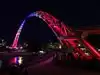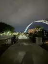 The architectural lighting adds nice ambiance to the arc and bridge, which are on a nice river walk and bike path. Nice stop if you’re downtown or biking through.