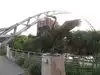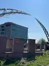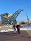 the Arc of Dream seems to be the landmark of the city (Sioux Falls), there is an indoor space showing the information about this Arc, it's just an structure for you to see it on the ground, you can't walk on it. There is light shinning on it at night. You can walk along the river, it's a short one, and there are some sculpture in that area, too.