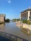 Beautiful area to walk along the river. The Arc (not arch) is a unique structure that lights up at night and produces a blue arc across the gap in the structure at the top.