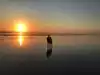 The beach is flat and long and very beautiful to spend time on! It is possible to run or walk on the boardwalk or the beach and there is a paved trail along the shoreline. It is a great space for children to play and it has small dunes at one end of the beach. The sunsets are the best we have ever seen and September seems to be a good month to visit this area with many people wandering down from hotels to watch the majestic sunsets.