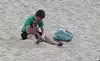 There are sandcastle builders, sandcastle teachers, large bubble entertainers, swing sets, a boardwalk, small aquarium with seals. Great family beach