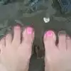 This beach is lovely white sand. There are swing sets, kites and sea gulls and lots of walkers. Take off your shoes and wiggle your toes.