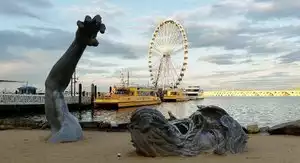 too far to walk to the ocean edge with a bad knee. Had a great river view from my hotel. Lots of people playing games, Close to Aquarium which was great.