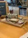 Small intimate room, w/ glass doors to large balcony & a breathtaking view. We enjoyed 4 whites; Solstice was unoaked & a bit sweet for my taste, although Liz definitely warned us! It would pair nicely with some chicken salad, but I was glad I sampled a glass rather than buying a bottle. For sweeter palates, the Strawberry Wine was a pleasant surprise & would pair perfectly with Summer Berry Trifle. The Pinot Grigio was crisp w/ expected apple notes. Riesling was nice light, semi-dry & refreshing. Our fav? The Sauvignon Blanc w/ nose of stone fruits (apricot to me, peach to my husband) & kiwi made for a crisp refreshing drier white. 3 Reds were quite pleasing for a summer day. Sunset had a very nice finish with a medium body. Cab Sauv had a great jammy nose w/ just a hint of oak & tobacco, perfect for some grilled meat on a cool summer mountain evening! Our favorite was the incredibly smooth flavored Syrah. Great nose, great flavor & finish. The absolute highlight of this tasting was Liz’s expert guidance. Her friendly banter through our tasting provided just enough information to confirm our choices, sharing little tidbits along the way about the winemaking, the winery & Virtual Tastings. We definitely enjoyed the well-curated selection of wine accoutrements & local foods: a nice variety of retail to pique the interest of any wine taster! We loved the local crafts. We will definitely be back every time we visit the White Mountains.