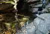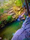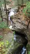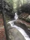 The water carving its way thru the rocks leading to pools of crystal clear water. Rocky and short steep hike to the top of trail, then a trail thru the woods down along the stream that's one big loop