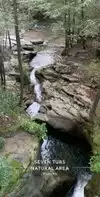 The tubs is a nice walk in the woods along the woodland stream. Very interesting formations through the rocks. I imagine in the stream when the water is higher they would be very impressive. However, the county and the state park commissions need to get their act together. Very little signage on sr 115 alerting cars where to turn. Then, once at the parking lot no map at all of the various trails around the stream and tubs natural formation,even though there is a nice large wooden information board. Perfect to show the trails and where the "7 tubs" were located.