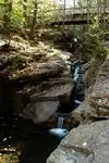 Easy walk to from parking lot about 100yrds. The falls are at the beginning of the trail. The shallow side to the right of the bridge is usually loaded with little kids. There is another swimming hole to the left of the bridge for older people. You can hike the trial at the bottom of parking lot to the right, easy flat, or you can do the loop which follows the river and then cuts across the top of the mountain and comes back down to the parking lot! Summer weekends are crowded and parking maybe full, fall and winter are nice and less crowded. The falls freeze over creating a nice photo opportunity without a long walk!