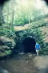 But what's with all the pairs of shoes left on rocks in the parking area?!? Anyway, we stopped here to check out the waterfalls and get in a little exercise while in the area for a concert. We met some people who actually slid down the waterfalls from tub to tub and while the water was cold, they said it was fun. We saw others cooling off in some of the deeper tubs too. The trails are steep and damp rocks are deceptively slippery. My husband slipped and fell but did not get hurt and didn't fall off into the ravine, but it would be ashy to do so. Definitely keep a hand on your small kids or pets! We found the railroad tracks above the tunnel but never found the hobbit house tree that is in the photos. Lots of Mountain Laurel in bloom made it look very pretty!