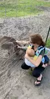 We visited on a weekday morning and were pleased that there were no crowds and we could distance. Our 2yo son loved the toys all over in various sand pits and DID NOT want to leave those areas. We bought carrots ($12/bucket) to feed to the animals which was fun. We picked oranges and had slot of fun looking for the best ones in the field. Visiting in the morning meant the weather was cool enough to enjoy our visit. We also enjoyed the orange ice cream/ slushee.