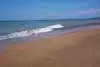 This beach is very crowded. It is across the river from the lighthouses. Do yourself a favor and go to the beach where the lighthouses are at Tiscornia Park.
