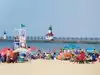 Lake Michigan, White sandy beaches, rides for kids, volley ball nets, jetty for fishermen, lighthouse, amenities,