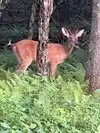 Gentle deer can be seen as you drive by. Some are in groups, while other times only two or three are visible among the green fioliage.