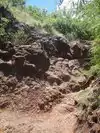 About 20 minutes in I climbed an easy wall that looks intimidating but is actually pretty easy. I think there was a way to walk around it. Around this area is a spot to go left and upwards as the trail narrows. Don't go this way. Go to the right which has a wider trail the somewhat dips down that goes up.