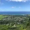 This is a great trail very close to the town of Kapaa. It is also known as the Nounou trail. It has a pretty rapid climb at first but there are beautiful ocean views! There is a small covered picnic table near the top. When you arrive at the top don't forget to take the small trail that goes to the left. There are some pretty awesome wind caves there! The trail is about 2 miles (4 round trip). Beautiful views at the top!