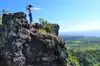 This is a pretty moderate hike, a bit more strenuous when you factor the steep incline at the beginning and end. Dress appropriately for rugged terrain, especially good traction shoes. We saw a couple and the woman was wearing a dress with teva sandals; needless to say, we saw them turn around early on. Go early with lots of water and fruit, as the heat and humidity mixed with the altitude can be difficult for some. My 6 year old could only make it up halfway up (so proud of her for accomplishing 2 miles round trip) and another hiker on her descent warned us that the rock climb near the top could be scary for her. We took the kids back down and two of us returned a couple days later. On our first climb, we missed one of the major marking on the trail with the painted arrow on the rock pointing right, so we took a more difficult way going straight. On the second hike, that wrong path had red tape and it was then that we noticed the painted arrow. Reaching the summit was thrilling to see the awesome views from the top. And the picnic table area is a nice place to rest and refuel or hydrate before making your way back down. Also, there is a fork as you approach the top where you need to make note of which way to go back down as there isn't anything telling you to take the Nou Nou trail vs the Homestead lot. Two couples we met at the top had their toddlers in a backpack carrier -- props to them!! Go climb a mountain!
