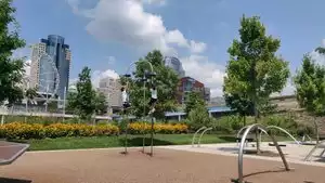 This park is fun for all. This has a spray-park, a real labyrinth, Swings, benches, activities, kids play area, riverfront walk and what not. One can defenitely spend 2 - 3 hours here. Especially with toddlers and young kids. There are few parking garages near the park. The skyline and riverfront views from the park is amazing.