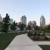 Very nice area in the city. This is an active area, couples and families walking the river walk, swinging on the swings, laying in the grass, riding bikes,exercising, kids playing in the splash area. It was clean and a well maintained area with nice gardens too.