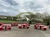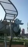 Enjoyed the park on a sunny day. Our group enjoyed the foot operated xylophone/piano thing and the flying pig statue you can climb in and move (an 80 year old in our group got in!). Children were enjoying the multiple water features. We enjoyed walking along the river. I love that there are a lot of bench swings along the water.