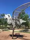 A great park at the river- something for everyone. Swings by the driver, water fountain to play in, benches throughout the park, beautiful flowers and garden area and some unique structures for kids to play (flying pig)