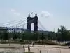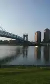 Green space along the Ohio River offering nice views of the river and of the John A Roebling Suspension Bridge. The bridge was built in 1866 by John A Roebling who was the same architect of the Brooklyn Bridge which opened 20 years later. It was the longest suspension bridge in the world at the time of its opening. The park is flanked on each side by the Bengals stadium on one end and The Cincinnati Reds stadium on the other.