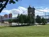 $4 parking next to the park, really nice landscaping and innovative, interactive playground for kids - Water features, rock climbing, balance poles, giant chess and checkers court, wall climbing, rope bridge and a foot activated keyboard for a carillon! Great view of the 1867 suspension bridge above. Right across the street from good restaurants and the Underground Railroad museum. Very pleasant!
