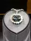 The world's largest blue diamond, the Hope Diamond is displayed as a necklace, and there are a lot of people surrounding it. The display rotates 90 degrees every 10 seconds or so for each side to be able to take a peek and snap pictures. So pack your patience if you want to see it.