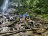 A great Waterfall to visit! However, be sure to proceed with caution. Witnessed a few people slide much more than I'm sure they wanted to and depending on your cell service you may not have reception if something goes wrong. So please proceed with caution. :-) My lady and I made the trek down the steep rocks held on to tree trunks, rope previously tied by other adventure seekers, and each other as we made our way down to the heart of the waterfall. It was an amazing view, the feeling of the water blasting off the rocks and transforming into mist then coating your body. The clean smell of nature as it purifies the air and the water which runs through the heart of this falls. Though its small compared to others its still in a category of its own. The deeper you go down the further you want to go. We eventually turned around and realized we were the only ones around and had went pretty deep down the water fall trails. We had a great time and intend to visit again with the kids. Parking is limited and is off of a curve on the streets above so be aware of that as well as the wildlife that we know are out there but you don't really see to much of until you go into one of the local shops and see tons of wolf skin, and other animals. As always, travel safely my friends.