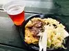 Hamburger or hot dog or chicken fingers and side of fries refillable drink and ice cream for $7.00. One coupon could be used for up to 4 people. It was only 2 chicken fingers but with all the rest it was plenty for meal. Couldn't take car for round trip on a Sunday but really had fun on golf cart. $10 per hour with a $65 max for all day. We used for 3 hours. We did no tours or caves or anything just carted around to the State park, nature preserve, walked trails (saw ratsnake) and watched the boats and jet skis.