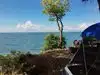 There is a small cafe in same area serving breakfast/lunch/dinner however prices are quite expensive. They also have golf cart rentals which seem more convenient for campers than having to travel down towards village.