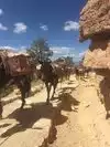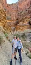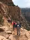 We had a party of 11 hikers. We started down at 9 am and gathered half way down for lunch break and photos together. Exciting, exhilarating, breath taking at times, an achievement to surpass. Beautiful sights and so much fun but challenging as there was no turning bavk. Stayed two nights at Phantom Ranch and headed back up Bright Angel trail early the third day.
