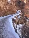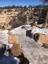 Most people who take this trail just go part way down. Likely 600 to 1000 feet down ( the canyon is a mile deep ). The switchbacks at the top of the canyon wall were icy, snowy and muddy in spots in March so many had on hiking boots, crampons and walking sticks. I did not have crampons but I wore good hikers. We are glad we dressed in layers as the temps rise as you go lower into the canyon plus it was a bit of a workout too... Bring water and snacks too. We also met some hardy souls along the trail who had camped overnight in the canyon even in March.