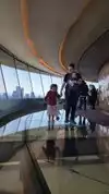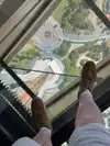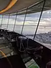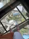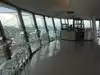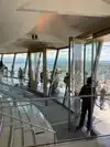 They have an overpriced bar at the top and limited high-top chairs for seating on the glass. The revolving floor below is interesting, with glass-bottom viewing. They also have limited window seating that has to be purchased for an hour along with drinks and is 21+.