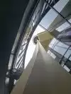 There are two viewing levels – one with slanted floor to ceiling windows and exterior access then, below that, a lower level with a round revolving glass floor (the Loupe) for that straight down view. Not for those with vertigo or a weak stomach.