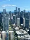 That said, it really is spectacular. The elevator opens on the main observation deck, and yes, the views are absolutely magnificent, but I was also impressed with the facility itself. It's very clean and modern and makes the whole experience majestic. Outside, there's a little bit of an overhang overhead, but most of the deck is open to the sky. The incredibly thick windows slant outward and must be a nightmare to keep clean, but somehow the staff manage it. Most people crowd to the south side of the tower, facing the heart of the city and the skyscrapers, but the whole view is incredible.