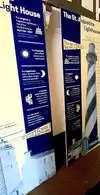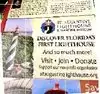 the lighthouse had alot of history and the building with 2 floors and a basement has a mannequin inside and a carboard cutout