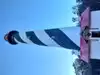 Easy to find(you can see it for miles!) Good parking area and interesting to see. Unusual black and white painted exterior.