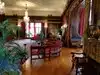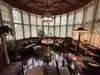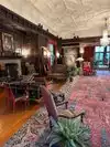 Classic "library" with wood panels. Decorated in period style furniture, accents, rugs - all of it - almost like you've walked back in time. The "great hall", the "plunge" (code word for the indoor pool), lead pane windows, decorative trim outside - and MUCH MUCH more.