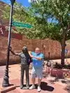 Great photo op. They have a couple of statues and a nice painted mural on the building behind the statues. Neat gift shops and restaurants in the downtown area too. Worth a stop!