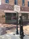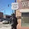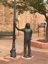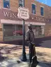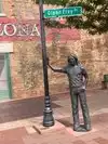 Located on 2nd street, there are statues on the corner as well as a red Ford flat bed ( listen to Eagles song). Take your picture with the statue and the red Ford will be reflected in the store window behind. Across the street is the huge souvenir shop.