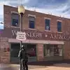 A street corner in homage to the song "Take it easy" that made the city famous with the passage "standing on a corner in Wislow Arizona" Statues of the two singers, a big crest of the 66, a big guitar and a shop with Glenn Frey's guitar in the window.