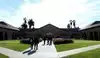 Greens, low rise buildings, yellow stone wall, red tops, fountains, palm trees and .... Beautiful sunshine and blue sky. It looks a resort rather than university. Good place to study at.