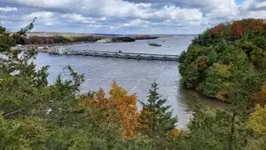 The views of the river are IMO not very scenic at all, with the dam and industrial buildings on the other side of the river - it's slightly better as you walk east and get away from that. But the trails are nice and shady. Part of the Visitors Center was also closed, with the exhibits, bookshop and counter with the Ranger also in the closed off area so that was disappointing. Not sure if that was due to the pandemic or not. The gift shop was available and the food area also. They sell wrapped squares of fudge and ice cream (good selection on the fudge!).
