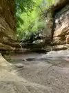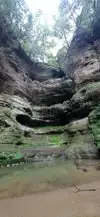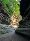 We were in parking Ottawa parking lot by around 9am on a Sunday, no crowds, ran into one family and one couple. We were prepared with change of shoes and socks as we don't have waterproof hiking boots. It rained the night before and was very muddy but my 7 year old enjoyed it, my wife not so much. Couple areas a little challenging trying to find least amount of mud and crossing the stream. Both the Council Overhang and Ottawa Canyon were great. I wasn't sure if could make a loop to Kaskaskia and back to parking lot as the map on starved rock website you can't tell. It is a shame people carve their names into the Council Overhang! Something as beautiful shouldn't be defaced.
