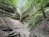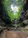 I very seldom give a 5 rating but I just cannot help myself here. This State Park is absolutely excellent. We hiked in the park on three different days accumulating a total of 6.4 miles. The trails leading from the Visitor Center are wide, comfortable to walk on, are boardwalks at times; but there are a lot of steps. I wouldn't necessarily recommend this for anybody with a stroller. (See photo of one of the set of steps we climbed), All of the boardwalks and steps were made of lumber that was probably 3-inches thick so there was no question about safety. You can get some information about the park and its trails on-line; but I strongly suggest a visit to the Visitor Center. There you can get (one per family) a very large map of the trails throughout the park. Illinois Department of Natural Resources staff members are there to provide you guidance and suggestions. During a weekday approximately 1500 people visit the park. On a "normal" weekend there are 3000-4000 people in the park, and we were told that on holidays the people count soars upward to 7000. So plan you visit carefully. Some of the canyons can only be seen from above; but other canyons you can walk all the way into depending on the amount of rain in the past in the area.